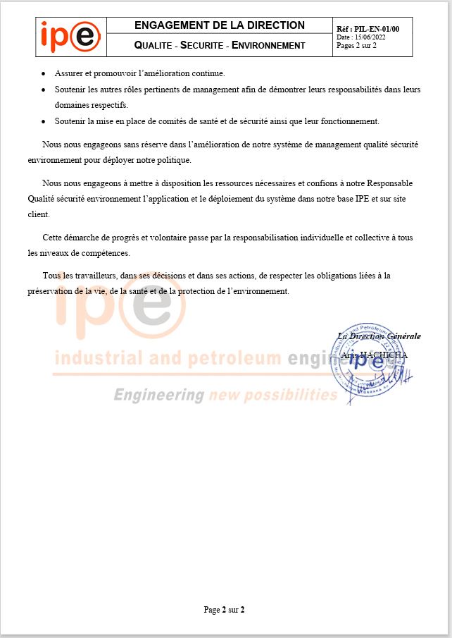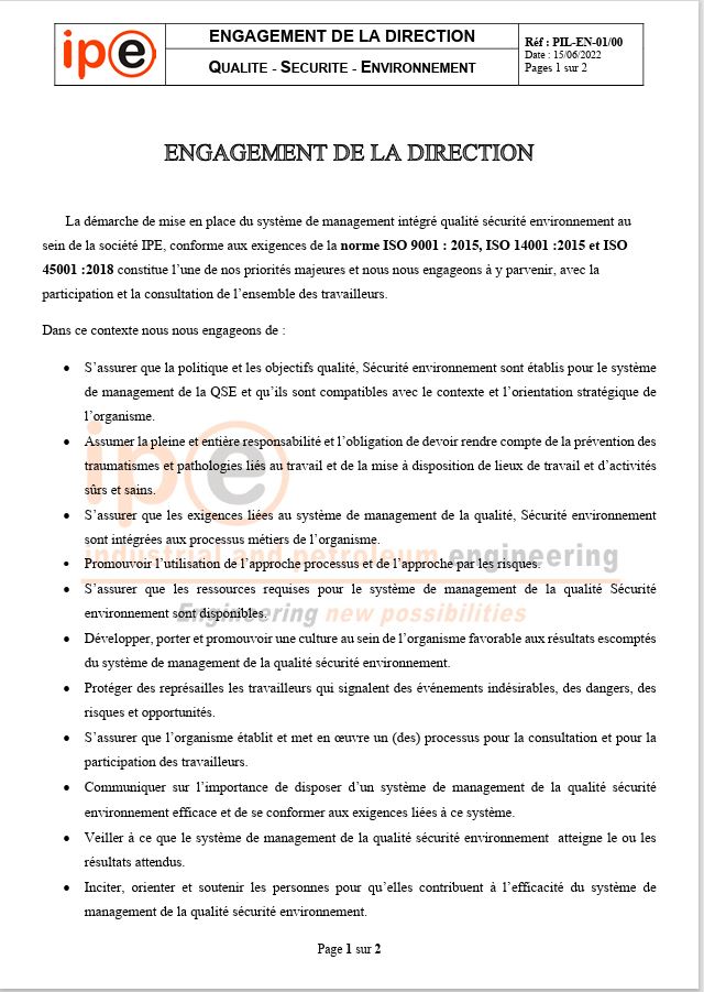 Engagement de la direction